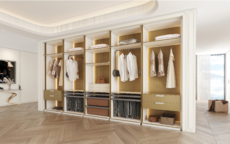 從收納到展示,繁而不亂,每一個細節、每一個舉止皆優雅精致。主臥帶衣帽間、梳妝臺,化妝更衣一氣呵成,無需來回走動。