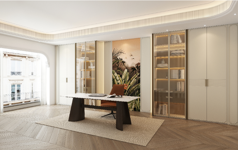 輕法式中古風,不示喧囂,不顯山露水,不喜高調張揚,一切顯眼包的顏色在這里幾乎看不到蹤影,有且也僅作為輔助色進行點綴,在低調內斂中透出骨子里的精致考究,散發自身貴氣與品味。
