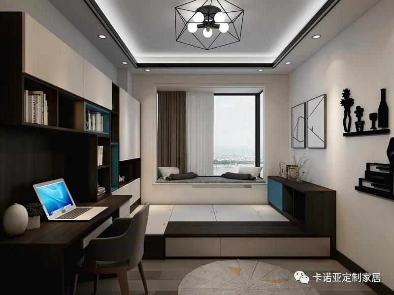 榻榻米、衣柜、書柜、書桌一體化設計,