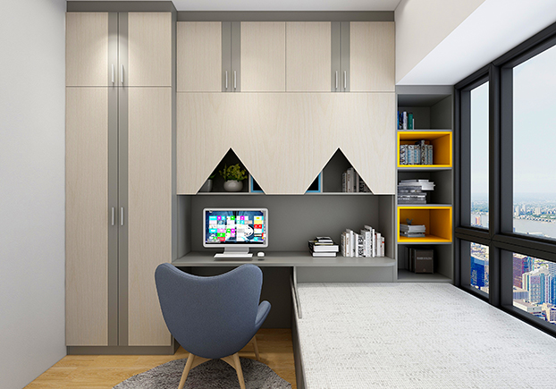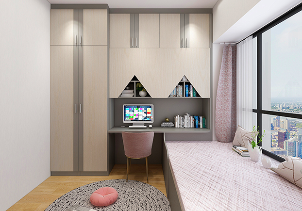 榻榻米+書桌+儲物柜+衣柜,平常可以做作業、看書,多功能室完成,既是書房也是臥房,儲物能力MAX。