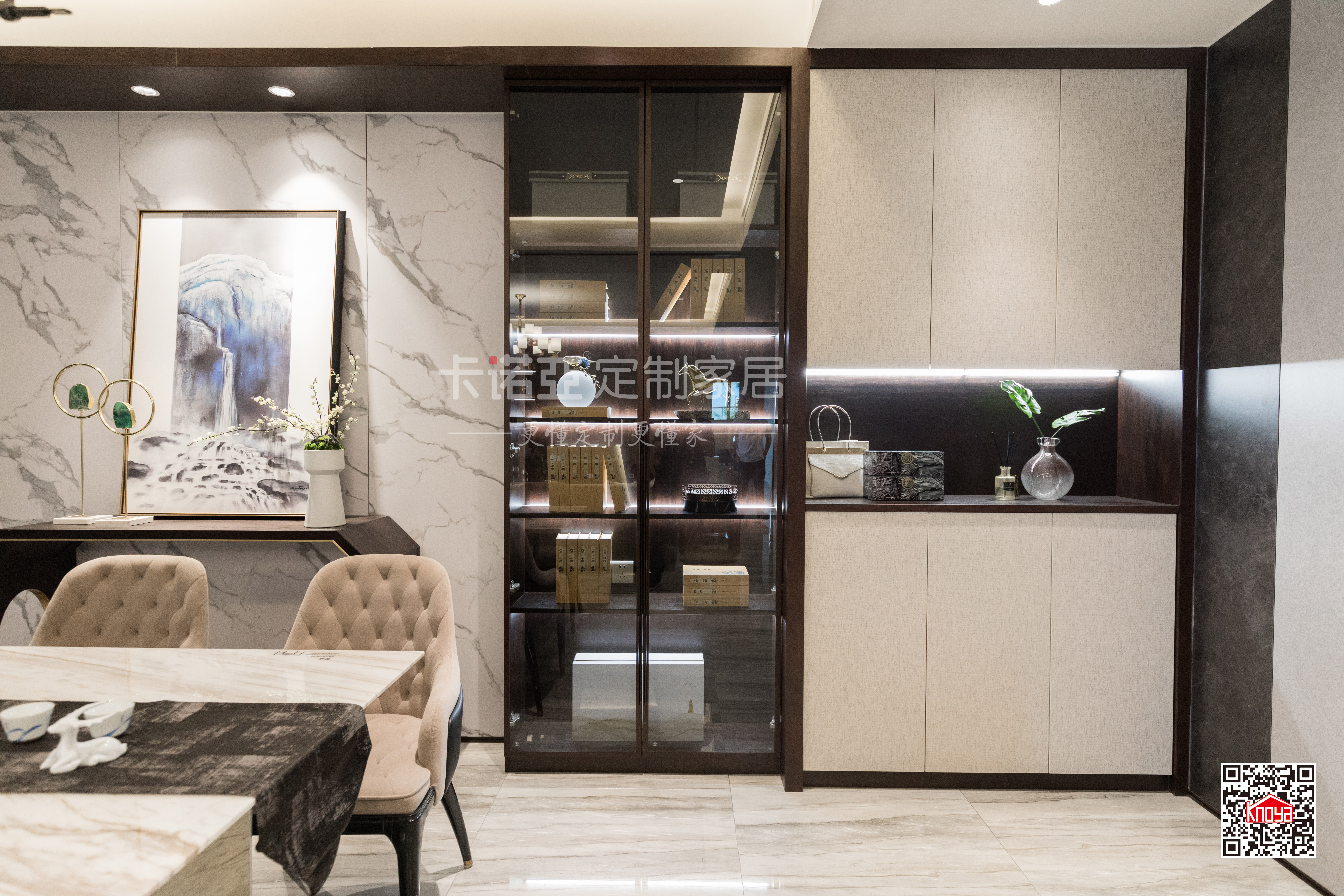 黑柜身板材,質(zhì)地通透,觸感細(xì)膩,為空間增加一絲典雅輕奢氣息。