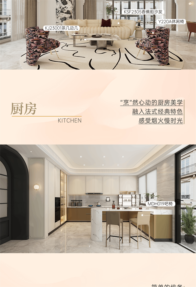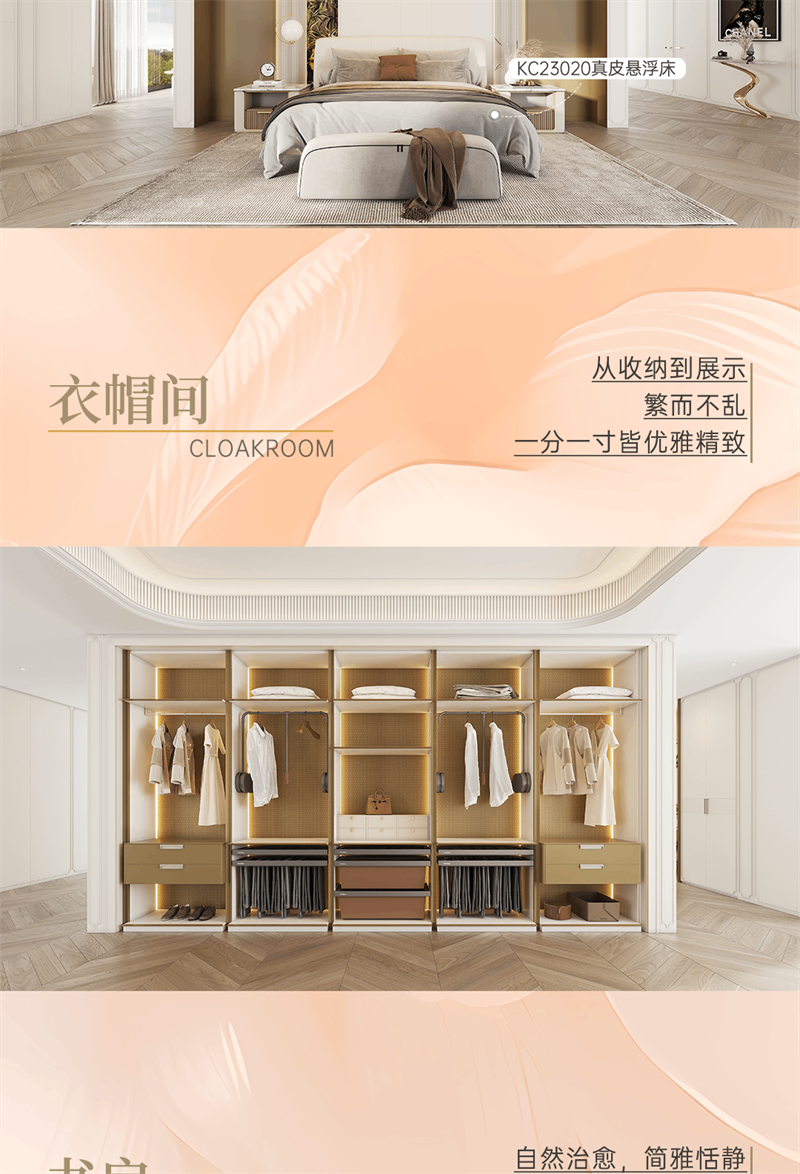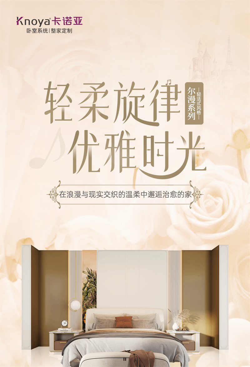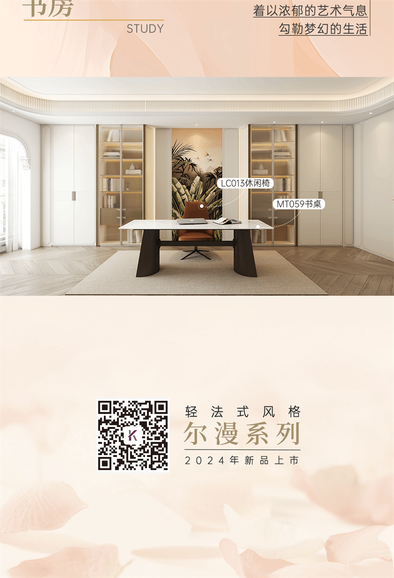 2024年新品系列,爾漫 |輕法式風格 以溫婉的設計語言,描繪精致浪漫法式生活場景。系列產品整體以奶油白和金色元素為空間基調,將法式的氣質融入現代空間,以精致細節的融入,讓家成為容納更多想象的美好生活殿堂,讓“美”成為一種生活態度。