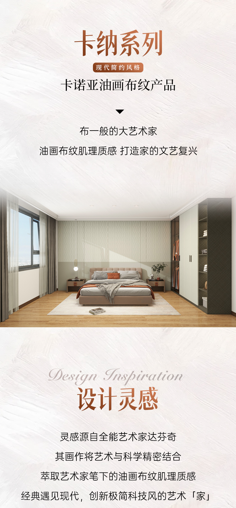 卡納系列 | 現(xiàn)代簡(jiǎn)約風(fēng)格通過(guò)特殊壓貼工藝,打造精致絲絨布紋、經(jīng)典菱紋肌理,猶如館藏潘畫(huà)般的質(zhì)感,演繹“布”一般的生活美學(xué)