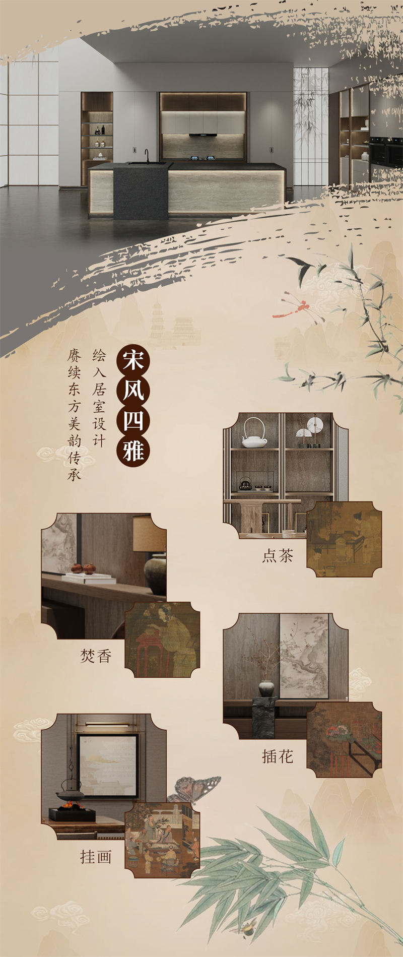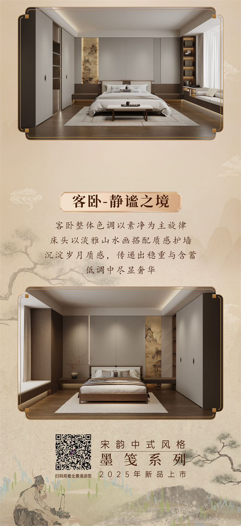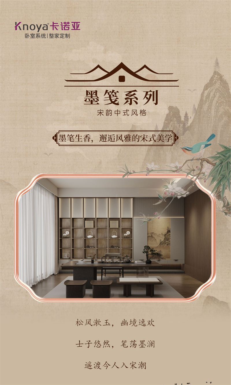 2025年新品系列,墨箋系列 |宋韻中式風(fēng)格宋氏美學(xué)源于中國宋代(960-1279年)的文化與藝術(shù)精神,以“極簡(jiǎn)、雅致、自然、內(nèi)斂”為核心,強(qiáng)調(diào)人與空間的和諧共生。其裝修風(fēng)格融合了宋代文人追求的禪意、詩意與哲學(xué)思想,注重材質(zhì)的天然感、色彩的柔和性以及布局的留白意境,被譽(yù)為“東方極簡(jiǎn)主義的源頭”。