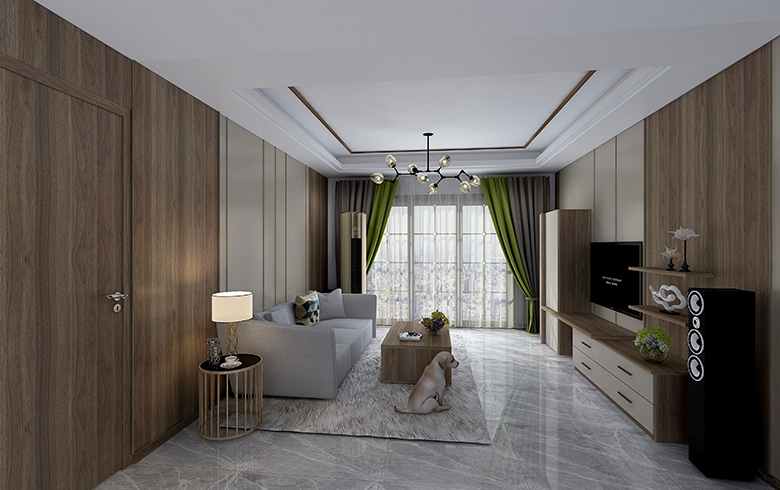 客廳護(hù)墻系統(tǒng)采用原木色與灰色的撞色設(shè)計(jì),大小不一、顏色不同的板材拼接帶來(lái)的錯(cuò)落感,專利扣線與御品木自帶的線條相呼應(yīng),豐富了色彩層次感,營(yíng)造時(shí)尚、高挑的都市現(xiàn)代簡(jiǎn)約客廳。