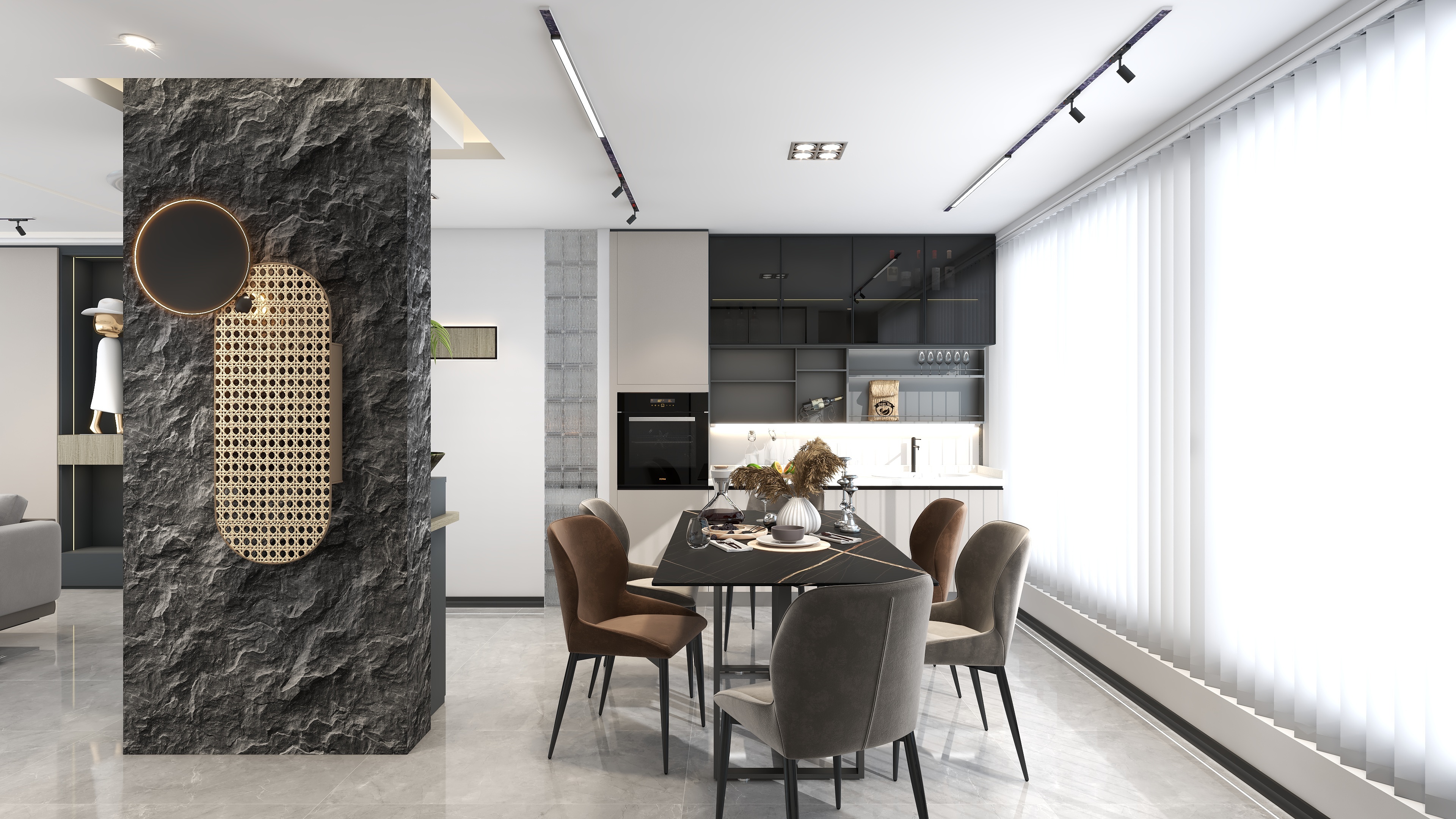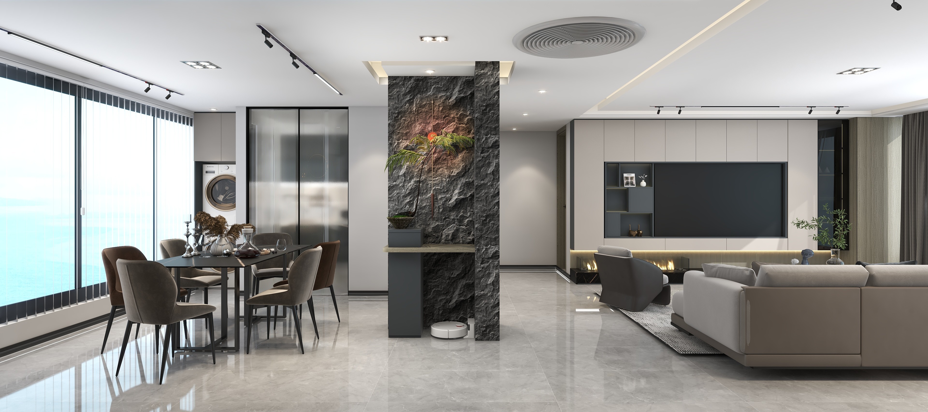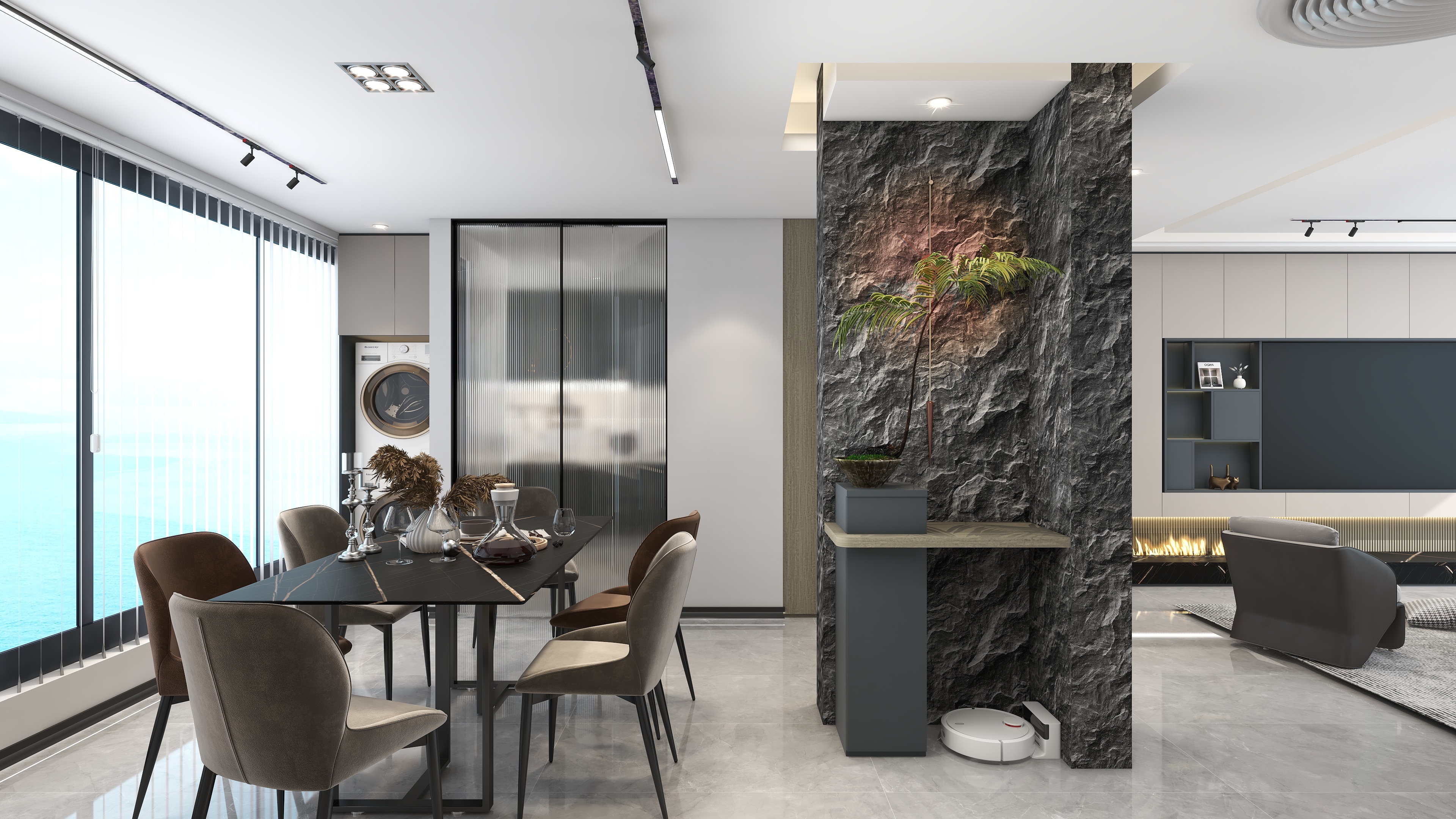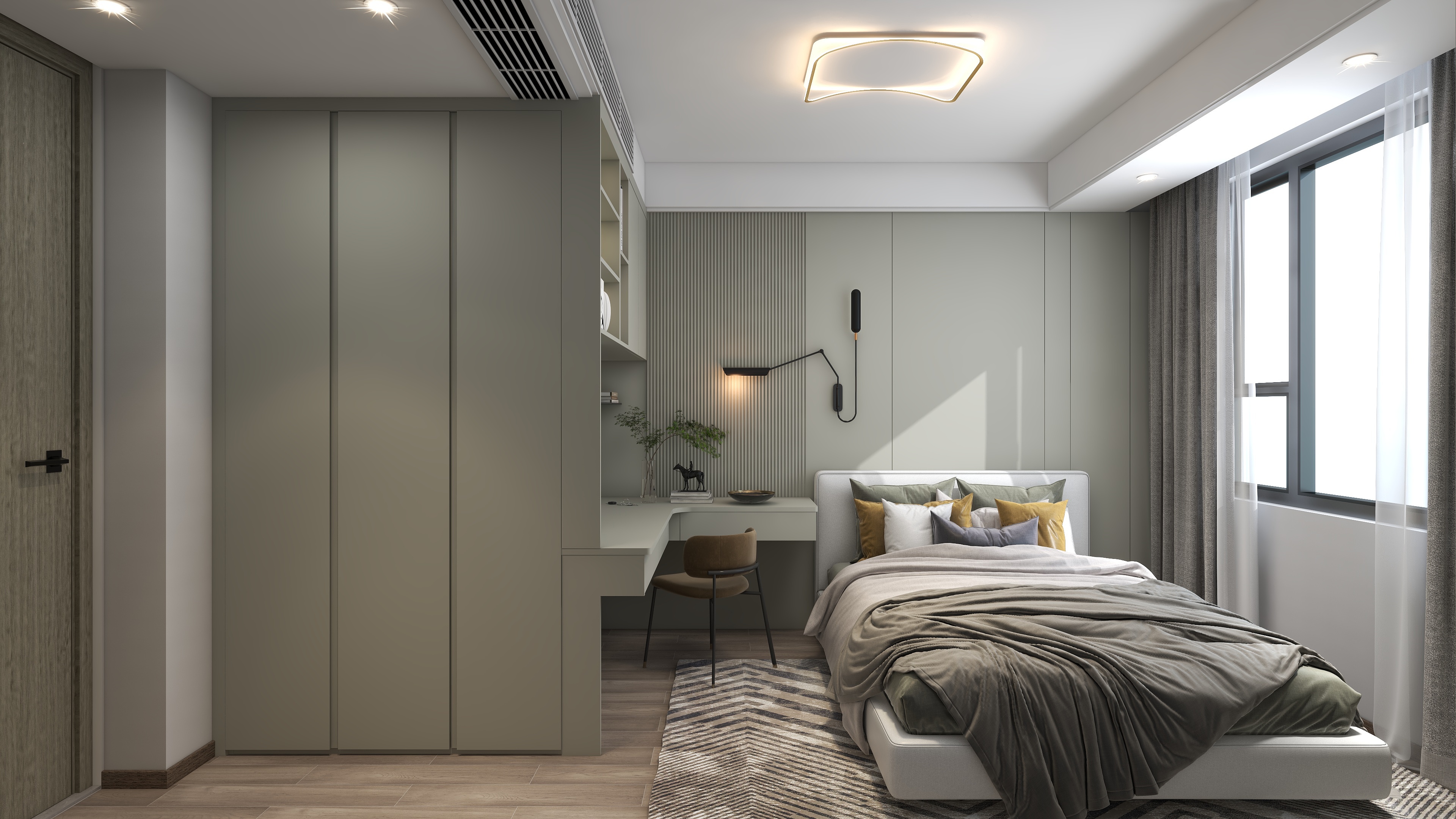 《櫟白》本案是四口之家,有三歲的孩子和老人,設計師根據每個人的需求與習慣重新規劃了空間,保留了三個房間,整體色調運用了莫蘭迪的配色靈感,卡諾亞主要打造的是柜、墻、門一體化設計,同色系的高顏值整家,整體以收納娛樂生活為一體,以靈活互動與自由開放為主旨,適當的留白,優化細節,衍生個性,締造出視野闊朗的簡約格調。