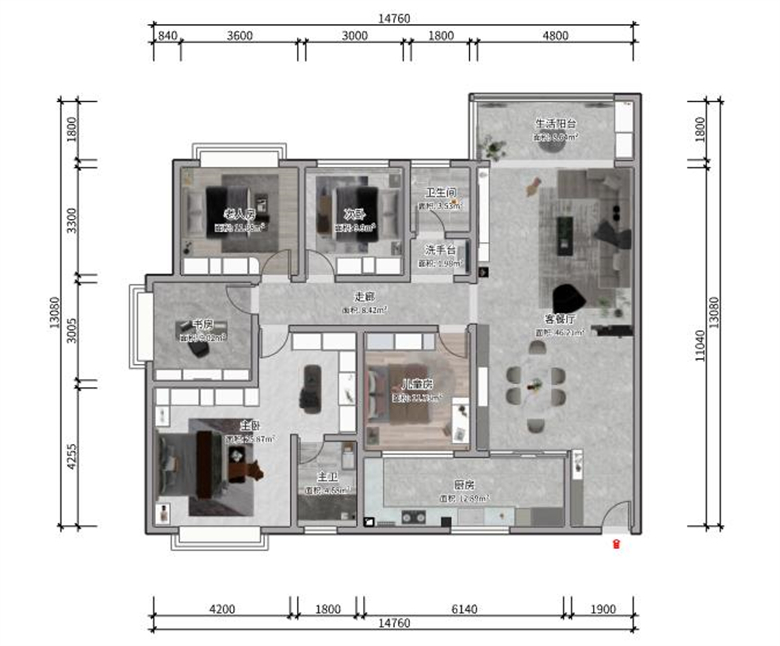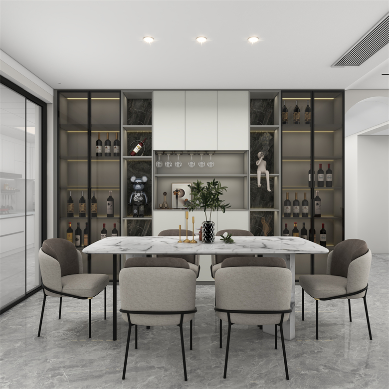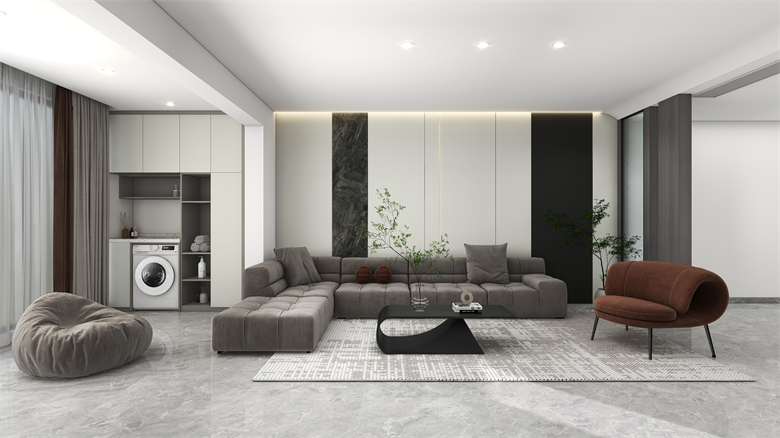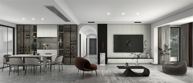 本案以現代簡約風為主要設計特色,黑白灰色調相托,重視室內的使用功能,強調室內布局與功能分區,家居陳設與空間的密切配合。