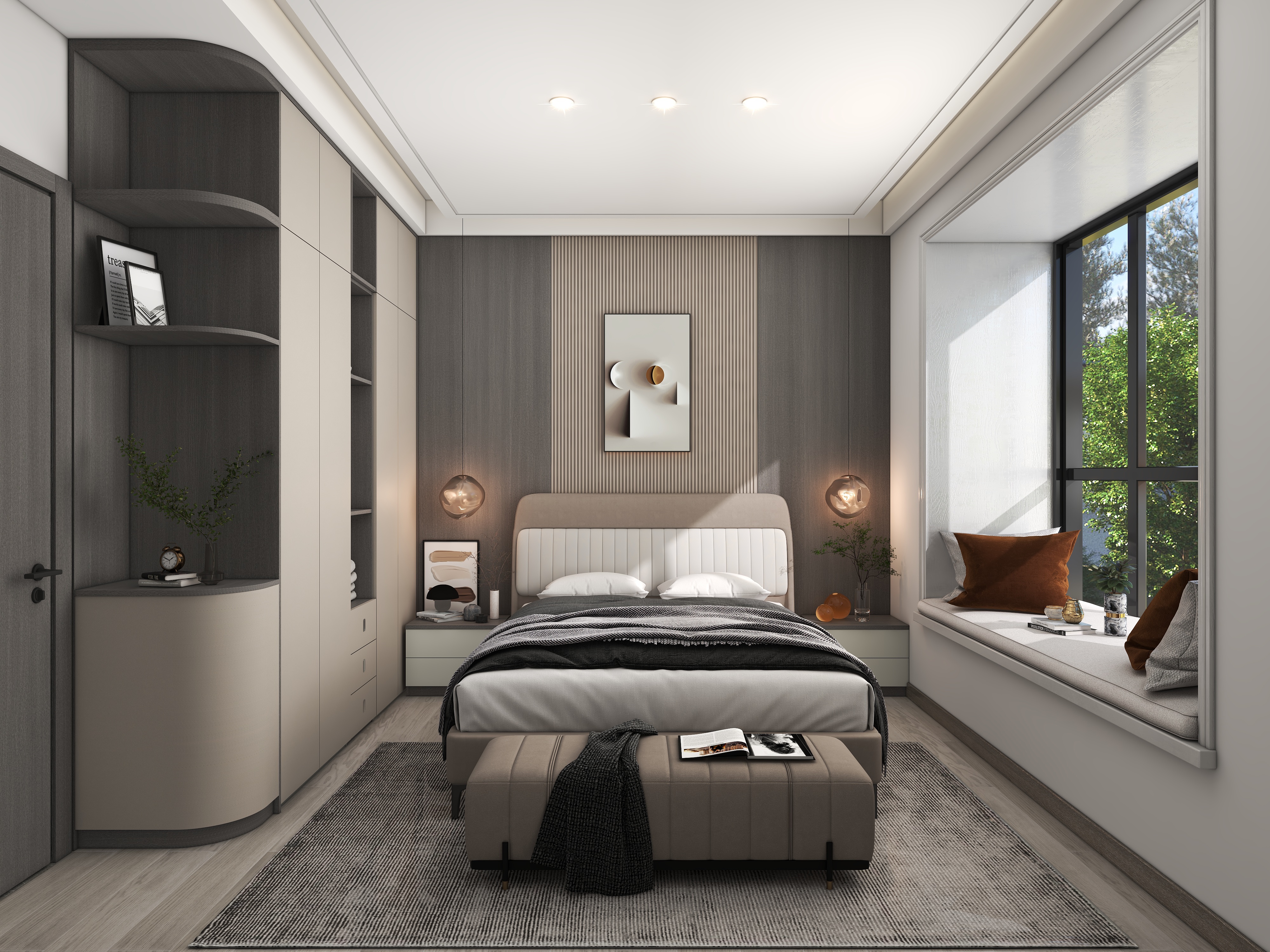 主臥是房屋主人的臥室,設計要圍繞主人的需求進行的,不僅要提供寧靜、舒適的睡眠環境,也是夫婦間的最親密溫馨的私密空間。