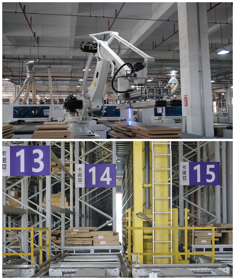 羅亞全屋定制共享卡諾亞在清遠及廣州的兩大工業4.0智造基地,包括德國豪邁、意大利比雅斯、CNC數控、機械臂等數字設備,擁有上萬個倉位的智能立體倉,賦能產品高質高效、按時交付。