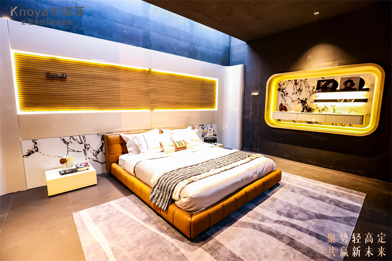 ③探索生活方式定制:卡諾亞通過展館設(shè)計和新品展示,深度詮釋從產(chǎn)品定制到生活方式定制的設(shè)計邏輯。展館內(nèi)的空間布置和產(chǎn)品都圍繞著不同客戶群體的生活方式和審美需求進行設(shè)計,旨在為客戶提供一站式家居解決方案,不僅滿足客戶對家居產(chǎn)品的功能需求,更要滿足其對品質(zhì)生活、個性化生活方式的追求。