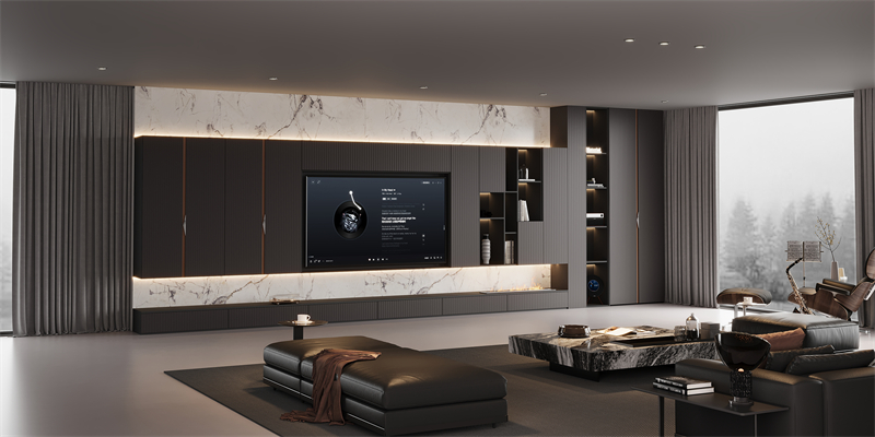懸浮柜體、嵌入式設計消除厚重感,搭配5mm超薄金屬封邊,讓家具宛若空間中的“藝術雕塑”;