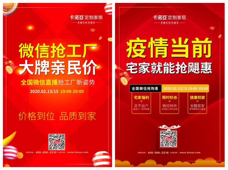 被疫情隔離的潛在裝修需求,有了線上的助力,迅速爆發出巨大潛力。眼下部分企業剛剛開始復工,物流也尚未恢復正常,對于有裝修需求的用戶而言,提前做好裝修規劃,未嘗不是宅家的另一種選擇。因此,卡諾亞采取線上微信搶購、限時優惠等多元銷售模式,并加強與線上消費者的溝通和互動,2月27日還將開啟“卡諾亞定制家居3·15品質直播盛典”。至此,卡諾亞率先掀起的新零售模式,將成為疫情期間家裝銷售的重要渠道。