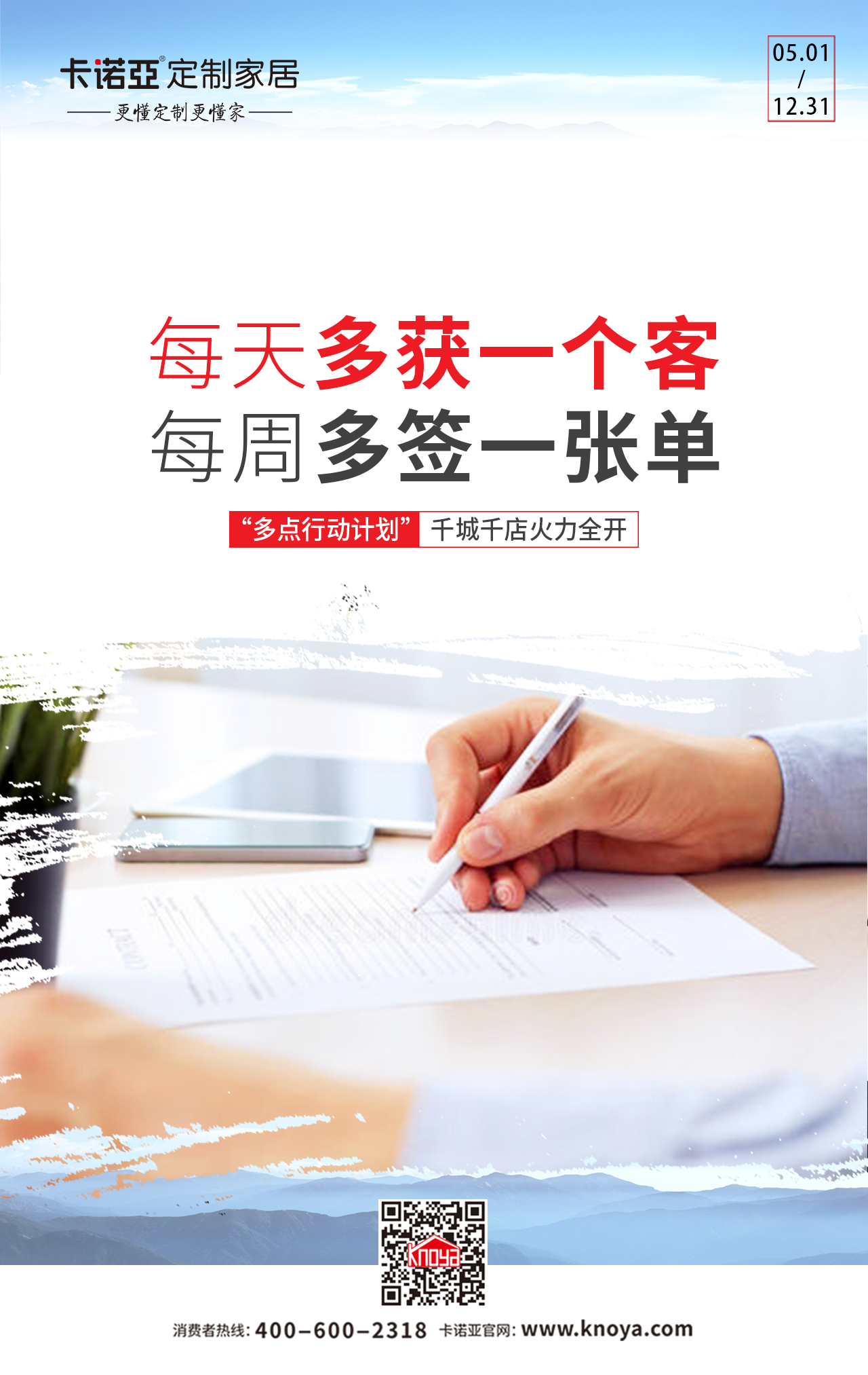 為此,卡諾亞“多點行動計劃”的“每周多簽一張單”的核心是提升店面專業服務能力,內容涵括店面形象、目標管控、人員素質、方案設計、待客流程等多個層面,通過貼心細致的服務,提升店面成交率,尤其是提升駐店設計師的專業設計與營銷能力,站在全屋“空間定制,省錢省事”的設計高度,為消費者“提供家居整體解決方案,創新引領人類健康生活”。