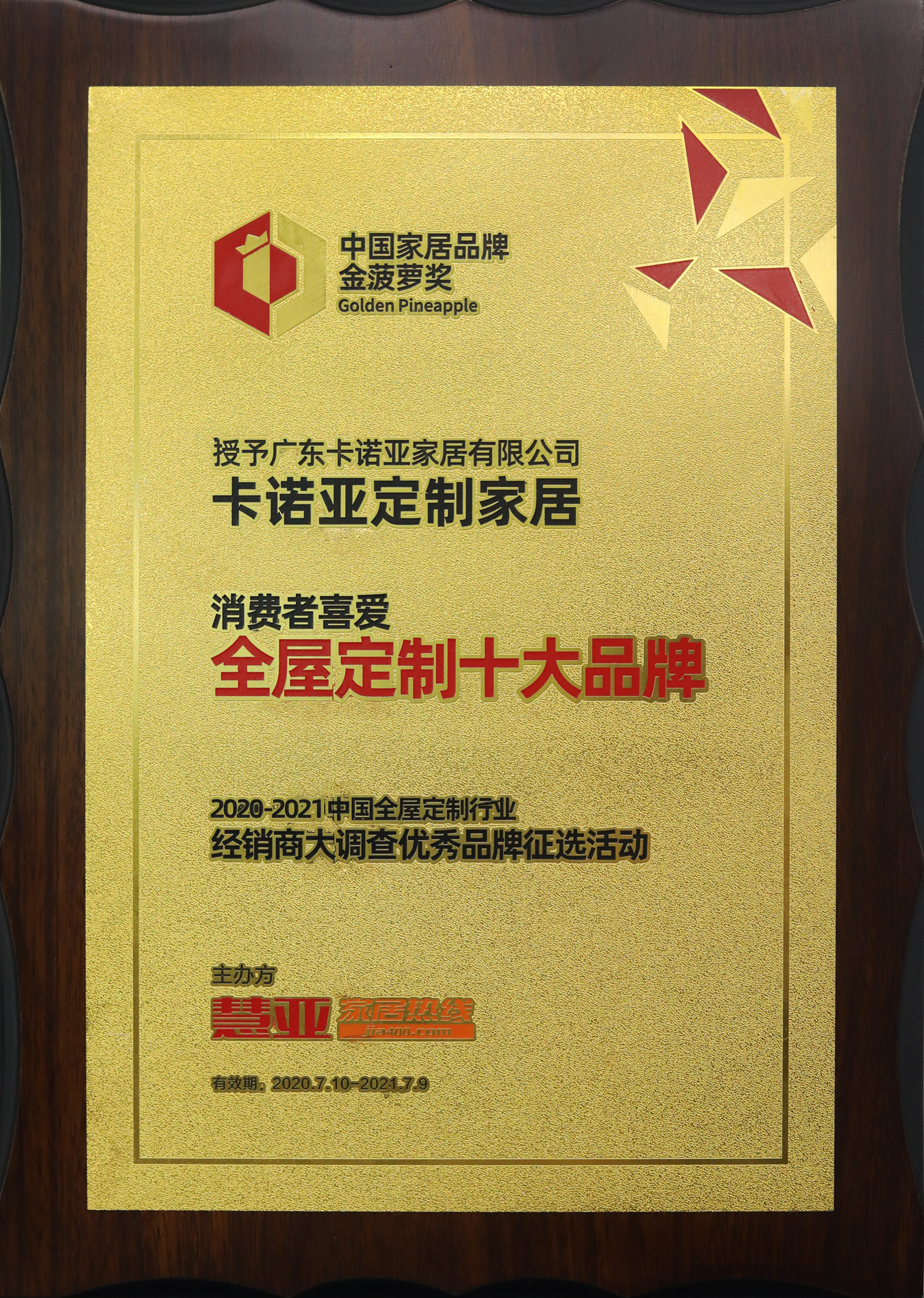 卡諾亞喜獲“消費者喜愛全屋定制十大品牌”
