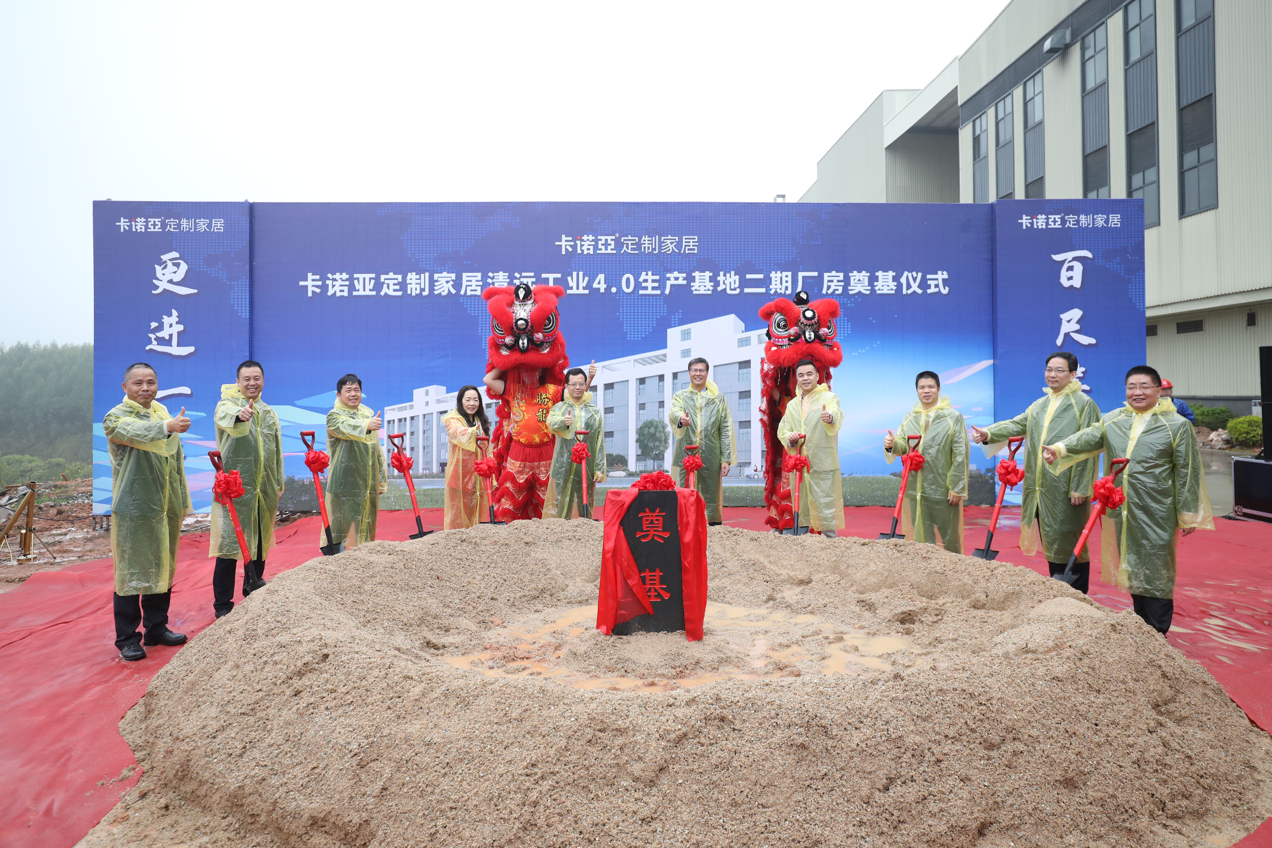 3月6日上午,以“百尺竿頭,更進一步”為主題的卡諾亞定制家居清遠工業4.0生產基地二期廠房奠基儀式,在清遠市清城區源潭鎮峽山工業園隆重舉行。卡諾亞定制家居董事長兼總裁程國標先生、執行董事吳紹華女士、副總裁兼生產中心總經理葉喜都先生、副總裁兼營銷中心總經理賴永精先生、工程公司總經理葉建中先生、董事會秘書萬成文先生等公司“董高監”人員,以及當地政府領導、行業協會領導、客戶代表、供應商代表、中介機構代表、媒體朋友等嘉賓參加了儀式。