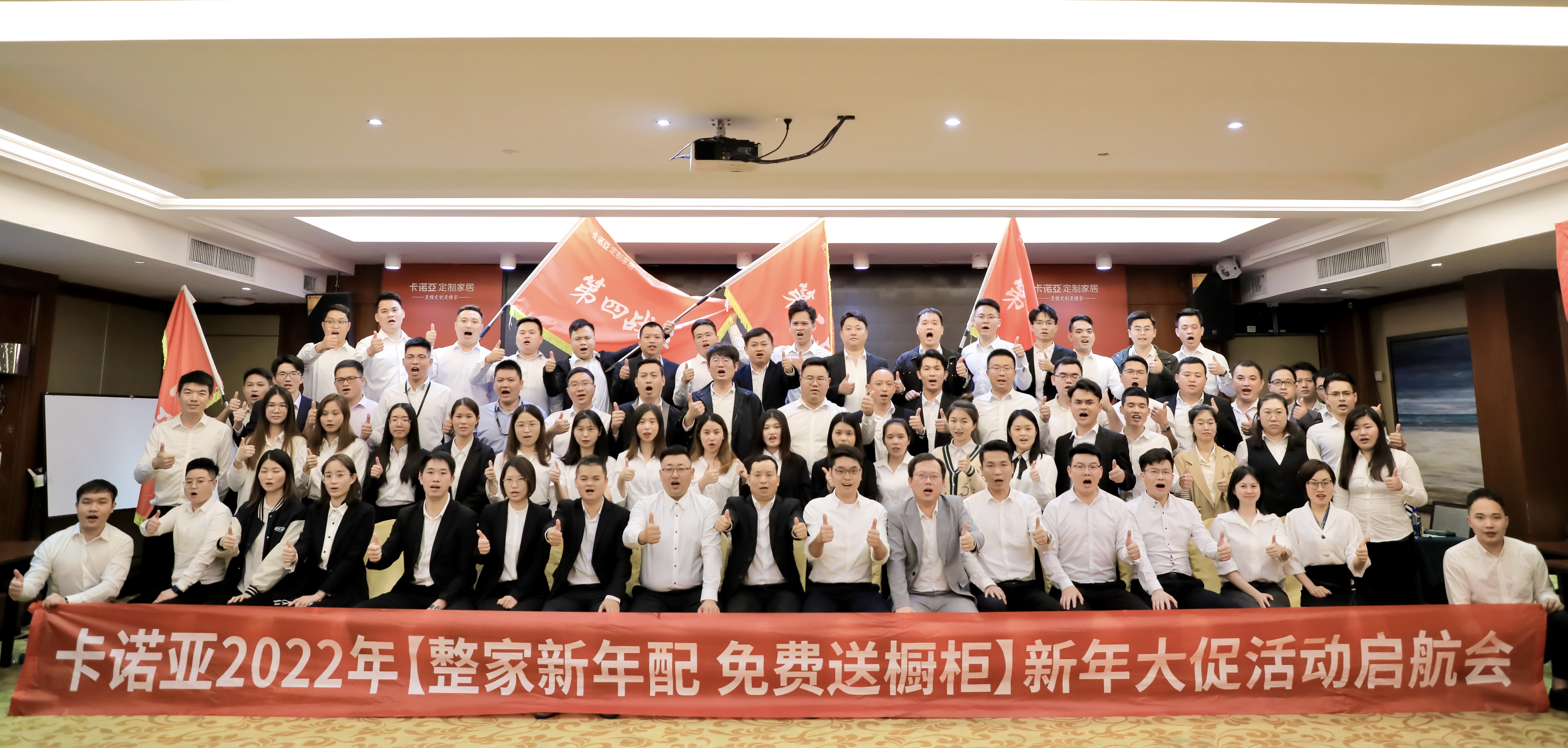 2021年12月17日,卡諾亞在廣州舉行2022“整家新年配,免費送櫥柜”新年大促活動啟航會,公司渠道部、培訓部、主動營銷部、市場部、直營部等相關部門骨干參與本次活動,就本次跨年促銷活動的詳細落地方案、直播模式、2022 新套餐策略和產品矩陣、活動目標考核、激勵方案等進行全面解析,吹響征戰2022年的嘹亮號角,實現開門紅。