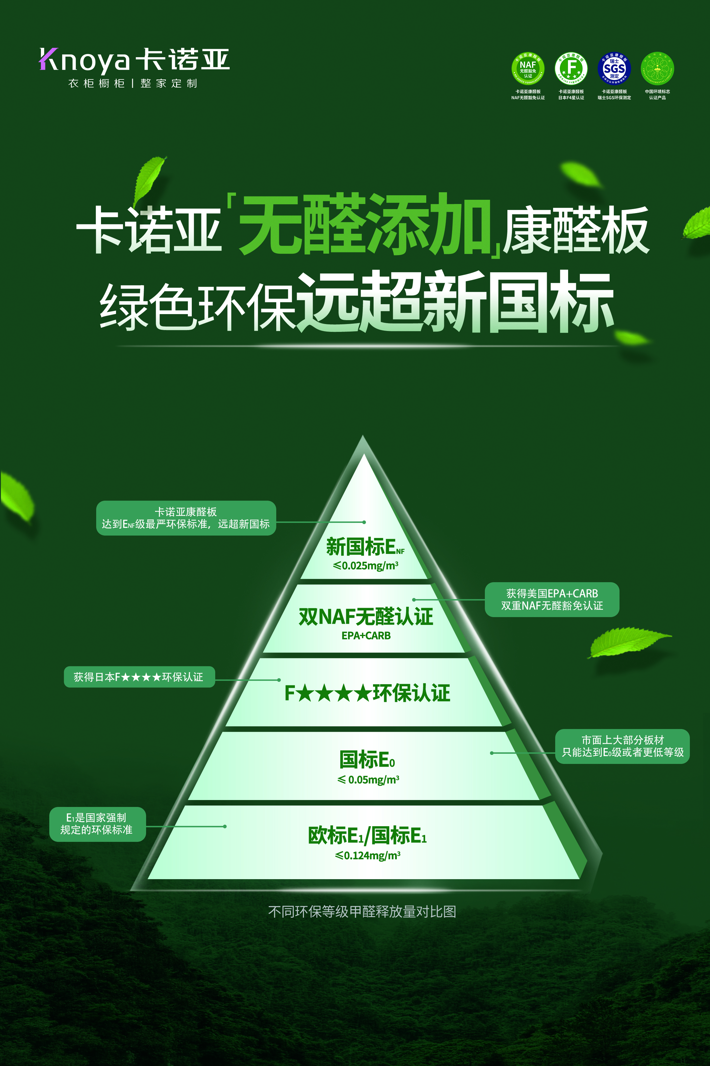 卡諾亞除了在生產(chǎn)端融入綠色發(fā)展基因,還在消費端積極引導(dǎo)普及綠色環(huán)保家居理念。在全國近千家品牌專賣店,卡諾亞大力普及高顏高品康醛整家套餐,以更具性價比的優(yōu)勢,讓健康家居走進更多的家庭。基于消費者對環(huán)保健康的高需求,卡諾亞康醛整家套餐選用的是達到新國標最高環(huán)保等級ENF級的康醛板,甲醛釋放量≤0.025mg/m³,可大面積使用于室內(nèi),不僅以無醛添加更環(huán)保、握釘力強更耐久、靜曲強度高更牢固等優(yōu)勢,刷新了消費者對于環(huán)保板材的認知,更獲得美國雙NAF無醛豁免認證+日本F★★★★環(huán)保認證+瑞士SGS權(quán)威認證,卡諾亞用國際品質(zhì)、本土價位推廣普及環(huán)保家居,依靠無醛添加的高品質(zhì)產(chǎn)品,帶來一種更加健康和綠色的高品質(zhì)生活。